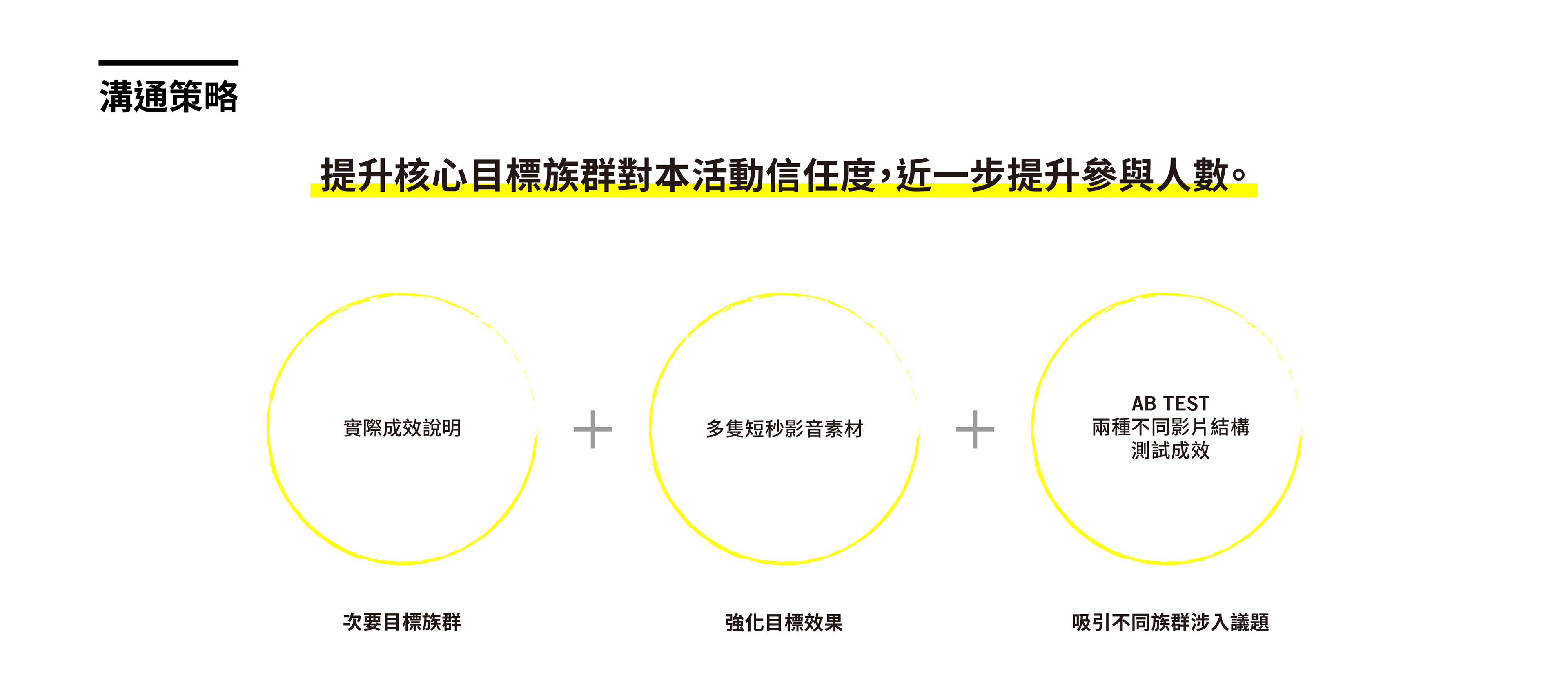 「寫信馬拉松」是國際特赦組織台灣分會每年固定舉辦的大型活動之一,2020年來自台灣的聲援數量在亞洲各國中表現亮眼,因此2021年希望透過宣傳更有效擴大溝通族群,讓更多人參與這場有意義的活動。我們建議先界定分眾溝通族群,搭配媒體投放策略以不同溝通重點的素材,和對議題關心程度不同的族群進行溝通。事後也可根據不同訴求內容的廣告影片來檢視後續溝通策略如何調整,以達到最有效的宣傳效果。視覺設計上則以符合國際特赦組織一貫的視覺規範執行設計,強化大眾對「寫信馬拉松」的整體印象。
